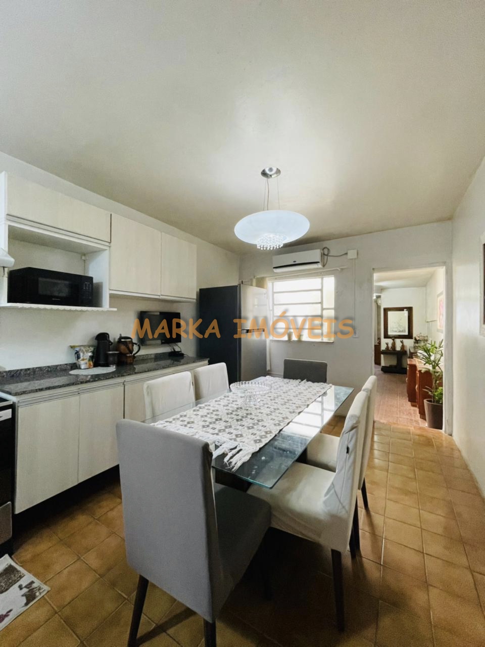 Térreo - Saleta, cozinha, sala ampla, e banheiro, escadaria para subsolo onde acessa a lavanderia;