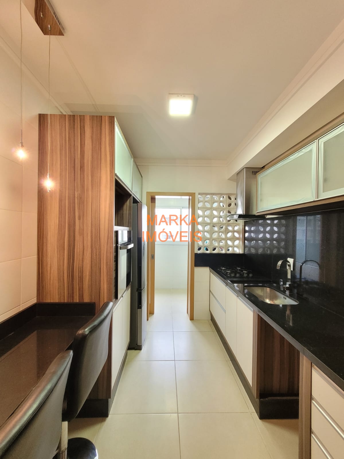 DESCRIÇÃO: Semimobiliado: De frente, suíte + 01 dormitório, ampla sala, cozinha com móveis sob medida, sacada com churrasqueira e balcão, banheiro social, lavanderia, 02 vagas de garagem. Prédio com salão de festas, elevador, portaria. Medidor individual de água e gás central.